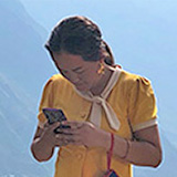 「もう慣れてるから傘は要らない。後ろは金沙江で、向こうは雲南省だよ。」と笑った。