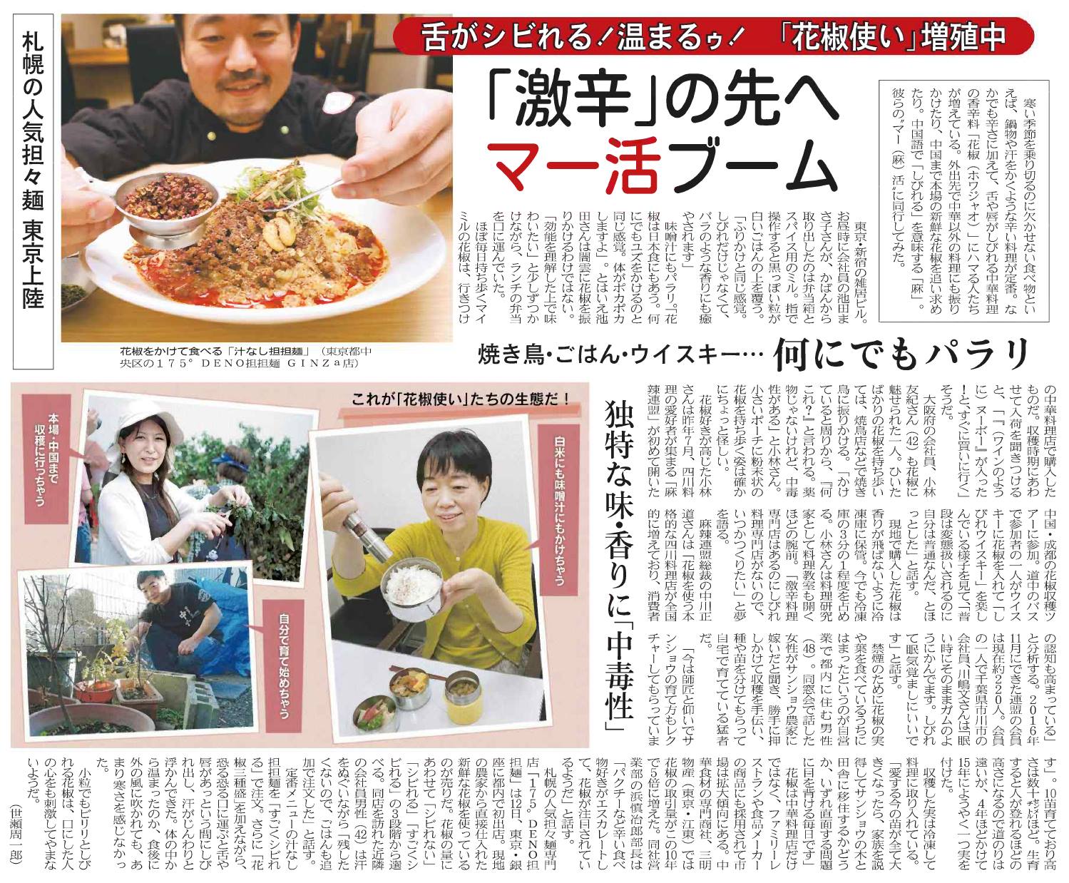今回、日経MJさんに取り上げられたのは「1.しびれる麻(マー)を食べる活動」。