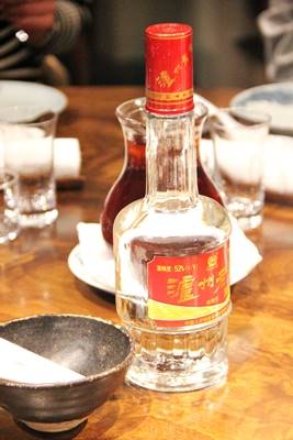 まずは白酒で乾杯!四川の老舗の酒蔵「瀘州老窖」を1本持参しました。
