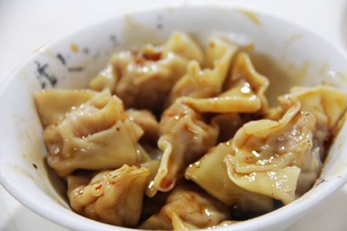 成都一の担担麺と成都名物の紅油餃子を軽くつまみます。