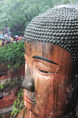 舟で楽山大仏を遊覧