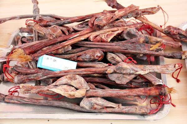 漢方で使う天麻と牛鞭(牛のイチモツを乾燥したもの)。普通の中国人も食べない料理!精力抜群の料理、間違いなしですね。