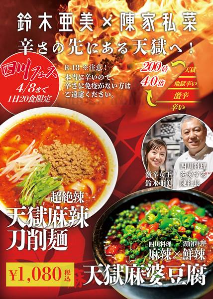 そんな人気料理を編み出した陳家私菜。激辛好きで有名なエイベックスの鈴木亜美さんとコラボで新しい麻婆豆腐を開発!それが「天獄麻婆豆腐」。