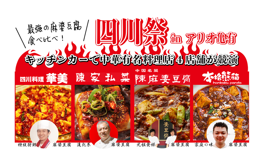 一つは、前回の記事で紹介をしたアリオ亀有でキッチンカーによる本格的な四川料理を提供し、展示パネルや体験型のブースを始め、四川をまるごと感じられる二日間、「四川祭 inアリオ亀有」の企画。