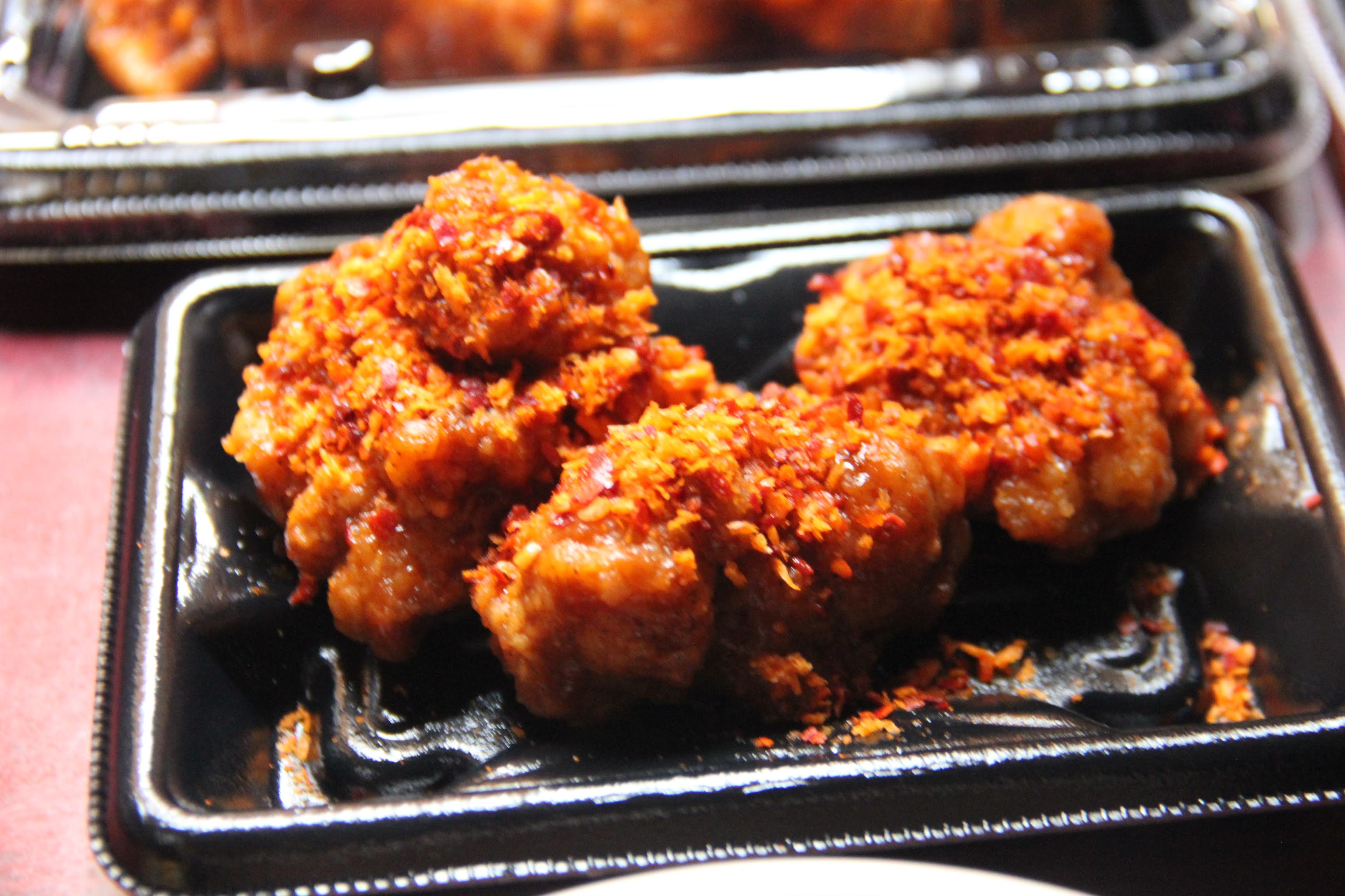 そして、楽しみにしていた試食日。出来上がった料理は、日本人が好きな甘辛ソースであえてある唐揚げと海老の唐揚げ。