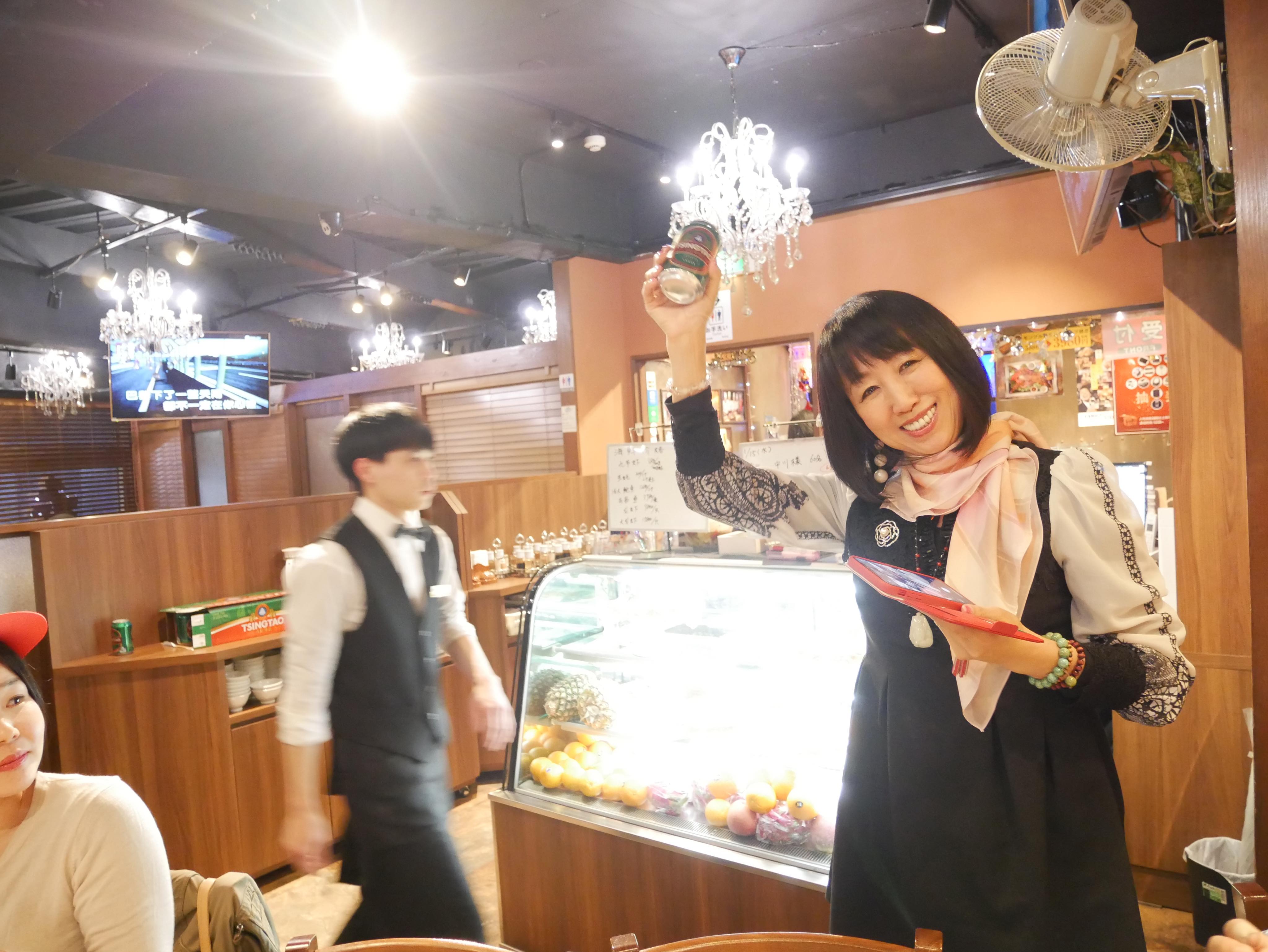 いつもクールな笑龍の田口シェフも乾杯でテンションあがり、嫌がっていた青島ビールサンバイザーをつけてしまう。白酒マジック!