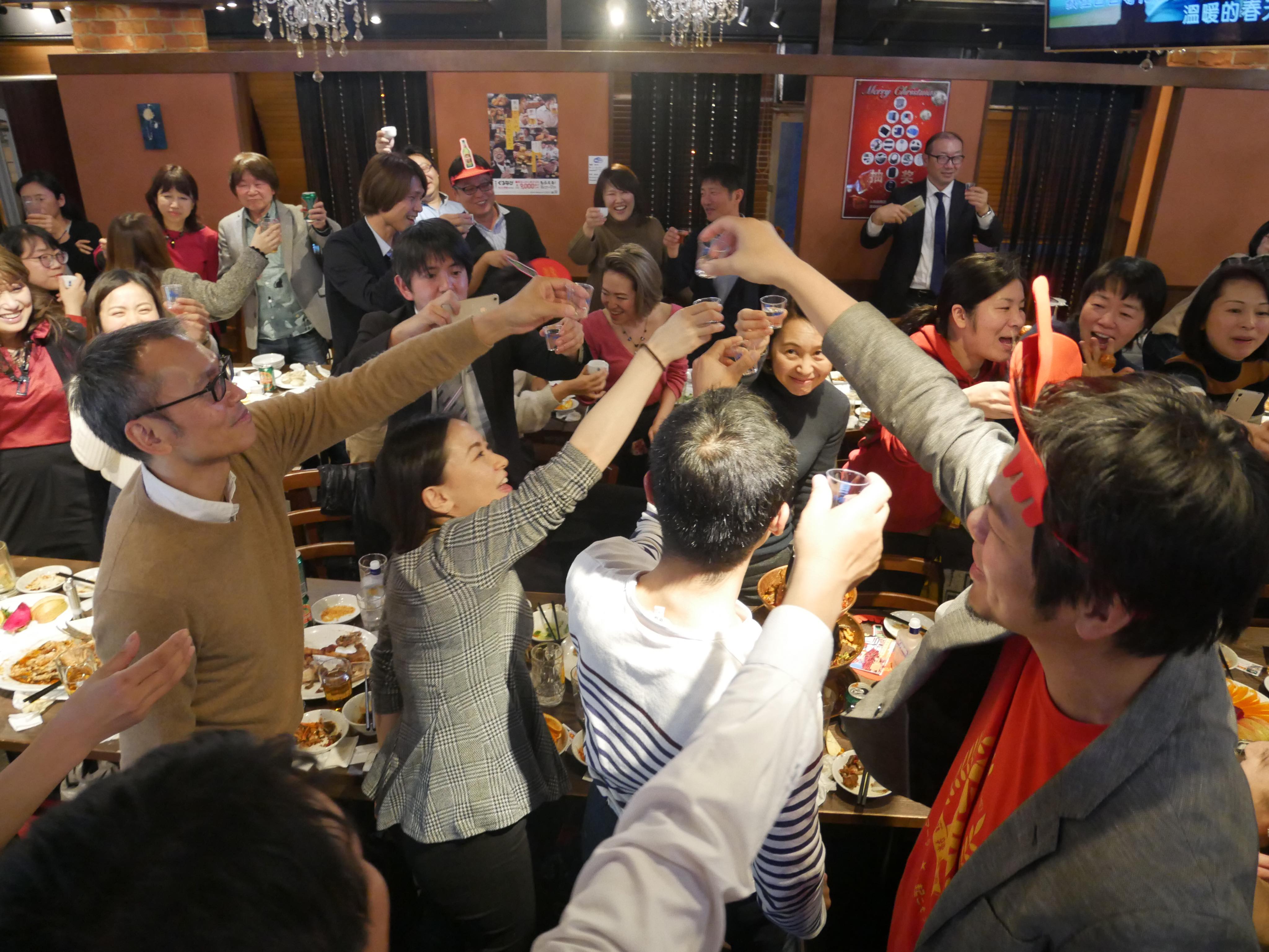 四川料理ツアーに参加したメンバーや料理人、四川フェス実行委員会のメンバーなどたくさんの人たちと乾杯しました!