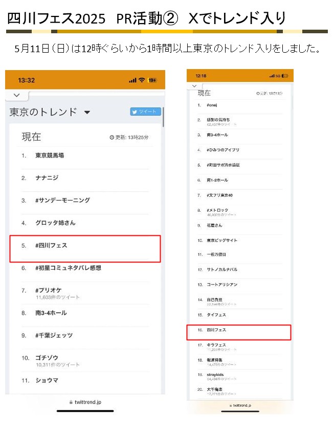 四川フェスではxを中心としてPR活動をしています。広告やキャンペーンはなし、すべて独自投稿のみです。特に5月11日はかなりの投稿がありました!SNS班の皆さんありがとうございます!