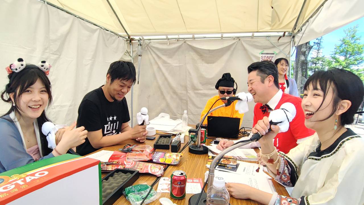 打って変わって二日目は晴天。半袖でも熱いぐらい。芝生にはたくさんの人がテントや下敷きをひき、思い思いに麻婆豆腐を堪能されていました。この雰囲気、みなさん、チルしていますね!
