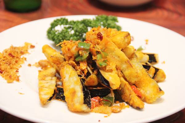 茄子をカリッと揚げた料理。こちら確か上海料理の一つ。表面はカリカリ中はトロっとした茄子がおいしい一品でした。