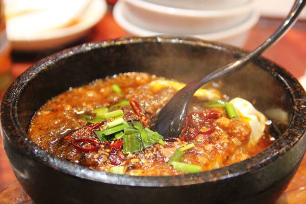 こちらは土鍋の麻婆豆腐。陳家私菜の看板料理と同じ!大きな豆腐をスプーンで崩して食べるのが特徴。