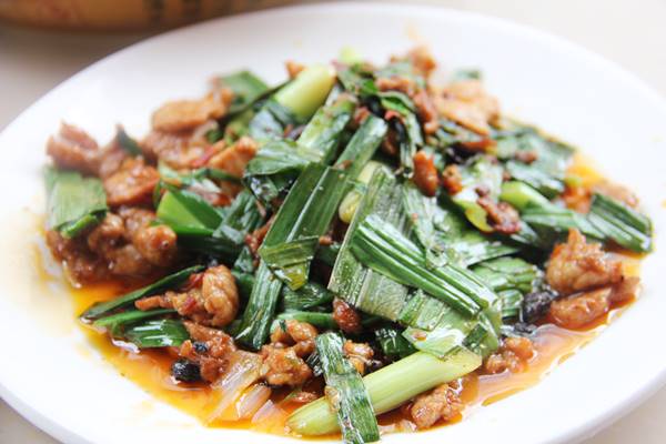 一緒に炒める具材はニンニクの葉(蒜苗)のみ。