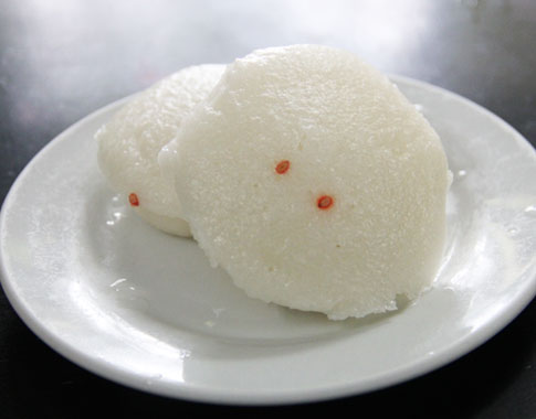糯米の中にラードを入れ、餡をはさみ蒸し上げる料理。餡は豚肉ベースと甘い胡麻と砂糖の餡の2種類あります。