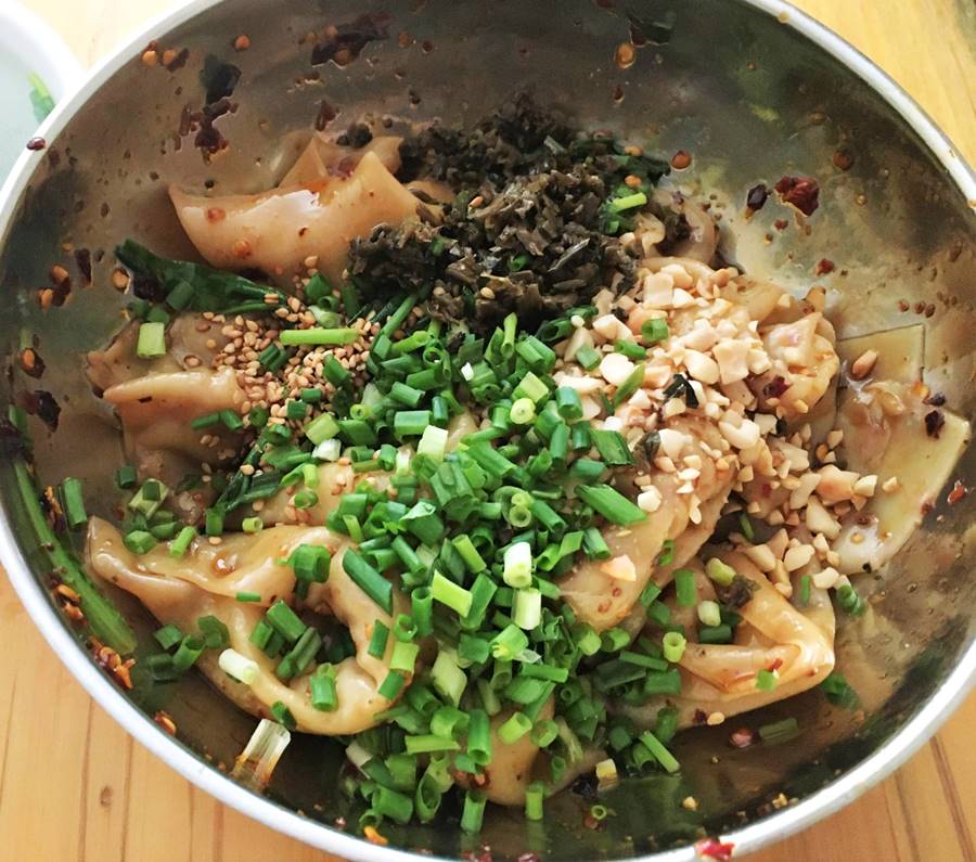 大好きな抄手、では燃麺の抄手版はどんなものかと頼んでみると、やっぱり芽菜に落花生に葱。これをまた豪快にひっくり返し混ぜていただきます。