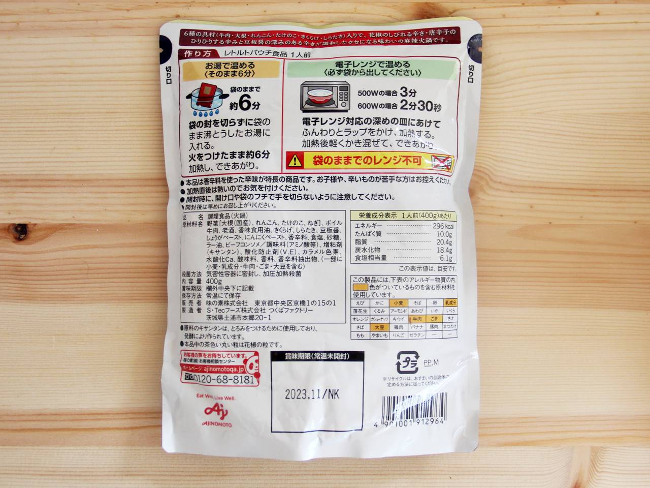 まさに家庭で手軽にすぐ食べれる、味の素さんならではの画期的な火鍋商品ですね。