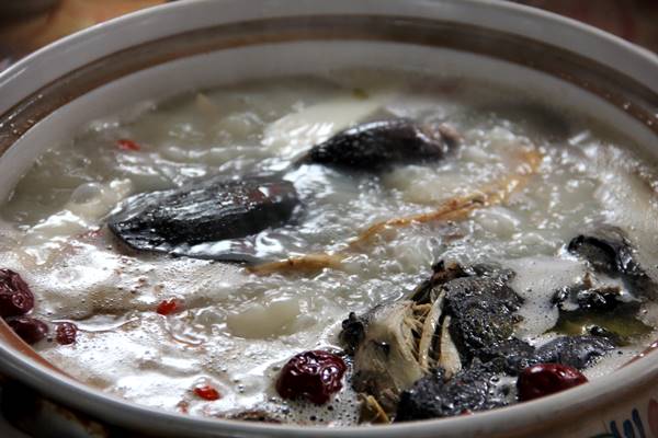 次に向かったのが老舗薬膳レストラン「钦善斋」。ここではすっぽんと烏骨鶏の鍋と定番四川料理を食しました。