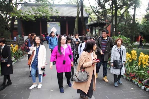 食べ終わった後、三国志劉備と諸葛孔明が祀られている武侯祠(ウーホウツー)に参拝。歴史オタクの何珂(カカ)さんの熱い解説とともにしばしの散策。