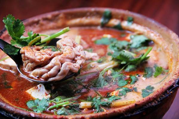 楽山のホテルにチェックインしたのち、夕飯は武砂锅で激辛砂鍋料理を。