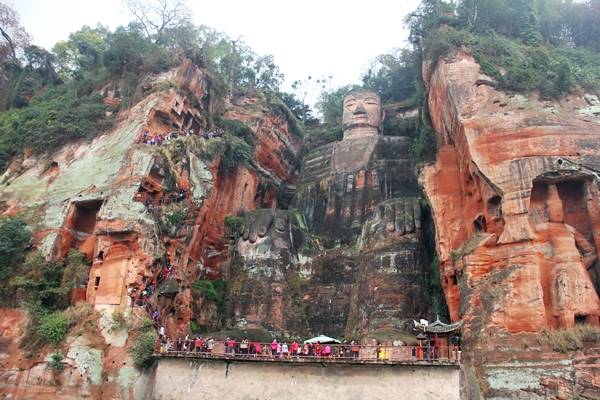 河の水が氾濫し、その祈願として、90年間かけて作られた楽山大仏の全景をパシリ!