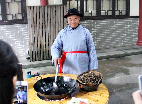 幺麻子の歓迎はまだまだ続きます。昔ながらの藤椒油の作り方を実演。