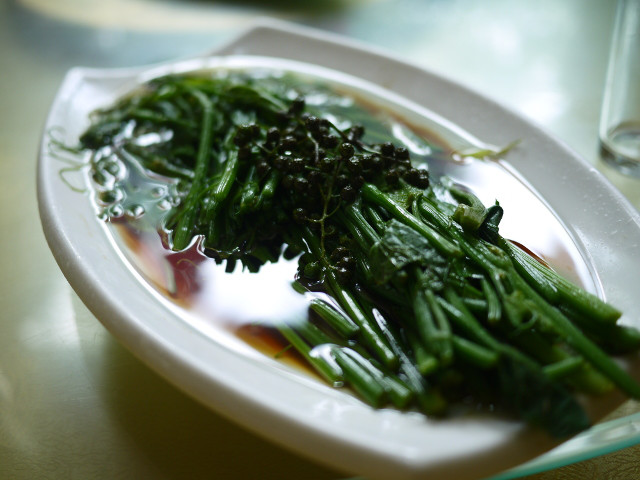 龙须菜(龍須菜)の煮びたし。甘めの醤油味に、ほんのり