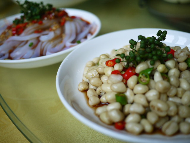 さっとゆで落花生の唐辛子和え。唐辛子は香りづけ程度で