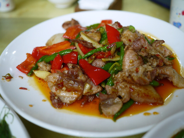 豚肉と野菜の炒め。豚肉はしっかりと煎り焼いています。いわゆる回鍋肉ですね。