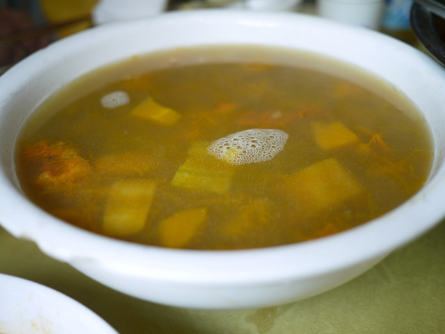 そして最後はかぼちゃの清湯。これが自然な甘味でほっとする感じ。辛味で高まったものを甘味で静める〆のスープですね。