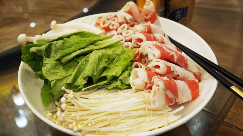 こちらは四川風のしゃぶしゃぶ。火鍋ほど濃くはなく、あっさりとした辛味のある味。スープも飲めて少し箸休めに。