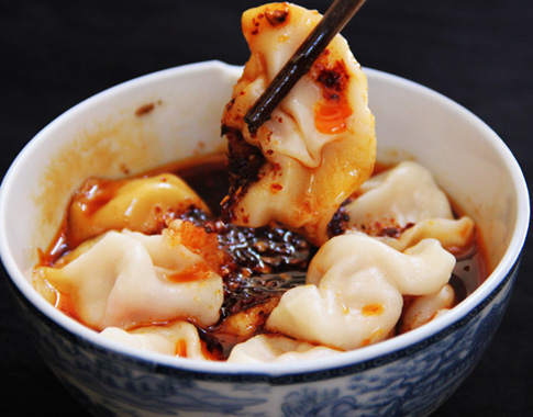 例えば「紅油」で餃子、ワンタンを味つけする場合、