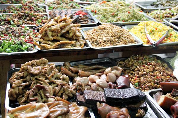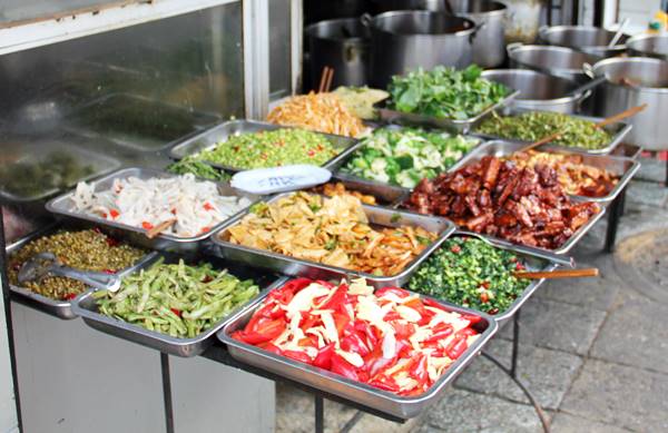 成都にきたことがある方なら、一度は料理がずらりと並んでいるこんな光景を