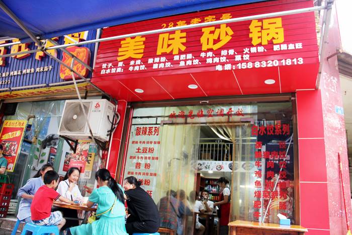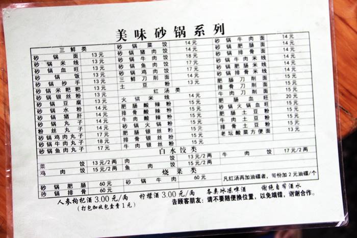 こちらは余氏手撕烤兔の斜め向かいにある美味砂鍋。まったくのノーマークでしたが、地元の人たちがにぎわっていたので、まずは食べてみることに。