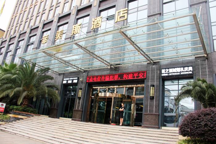安岳県の小吃を食べたのちに向かったのは大きな道路沿いにある菲美斯酒店という大きなホテル。
