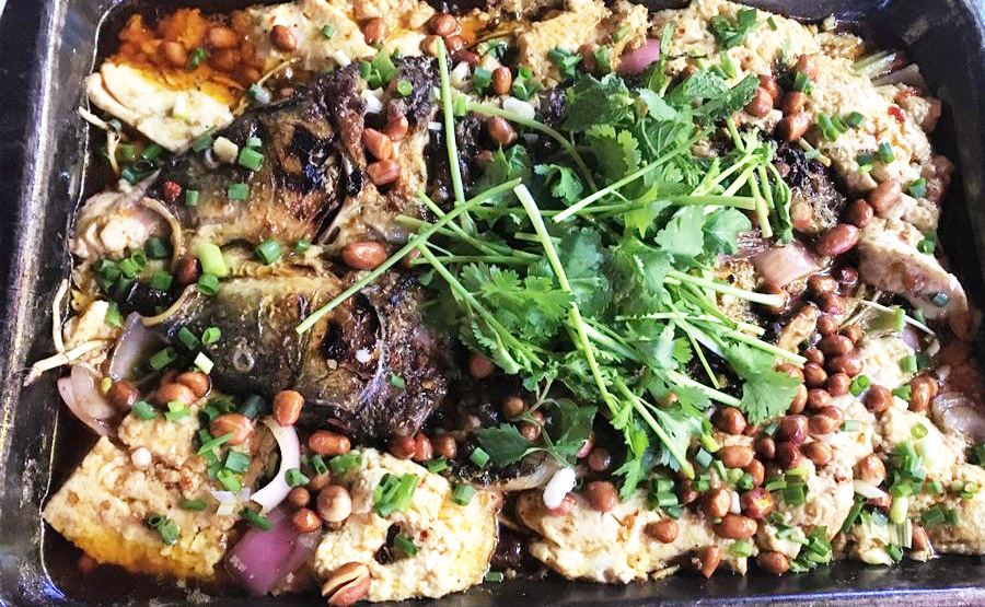 興文は23日間周遊、最後の旅先でした。ここでは四泊しましたが、実は四晩連続で同じお店に通ってしまいました。豆花烤魚(トウファカオユー)を看板に掲げるお店で、魚よりも存在感を発揮する豆腐たっぷりの烤魚がおいしかったのはもちろんですが、他のお店に行く気を失わせたのはお店の人たちの温かさ。