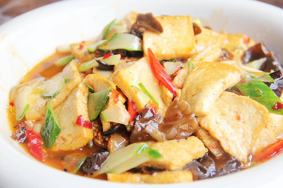 料理に使われているその豆腐名が料理名になっているのですから、当然気になります。一口食べてみれば、安心する美味しさ。脂っこく辛くくせのあるものが多い宜賓の豆腐料理とは対照的に、さっぱりしながらも温かく胃が休まるあんかけ豆腐でした。使われているキクラゲはまた、剣門の特産です。